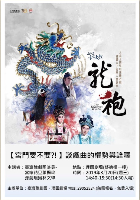 2019/03/15 10:59 [系所活動公告]豫劇團校園巡迴講座「宮鬥要不要?!】談戲曲的權勢與詮釋」 (無需報名,免費入場)