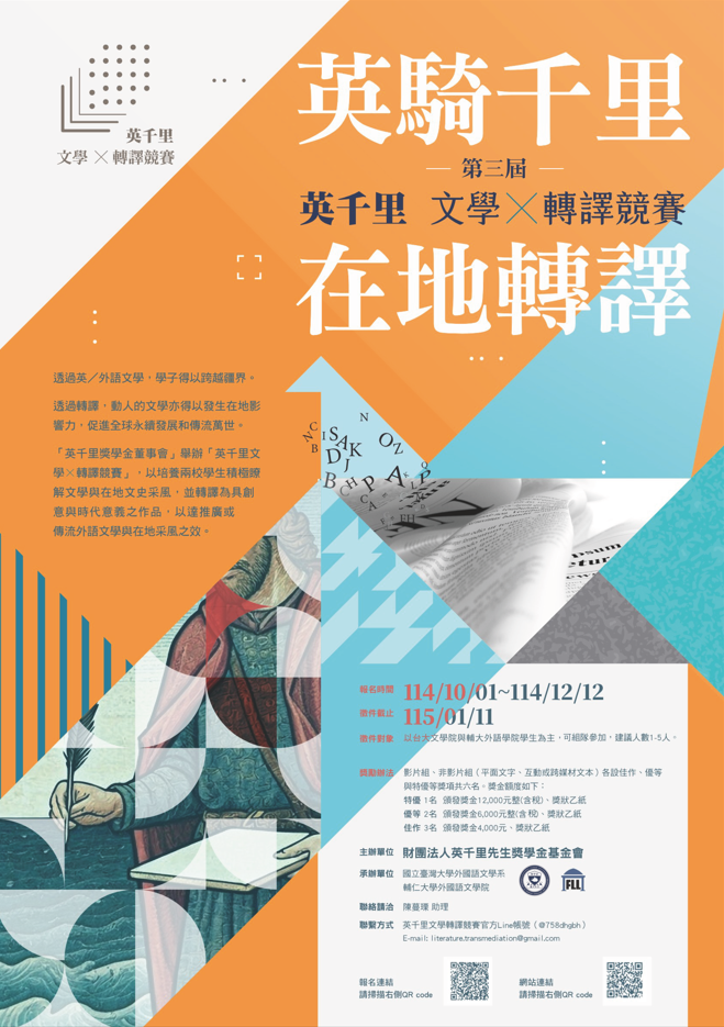 2025/10/09 15:29 [系所活動公告]第三屆英千里文學轉譯競賽歡迎報名參賽