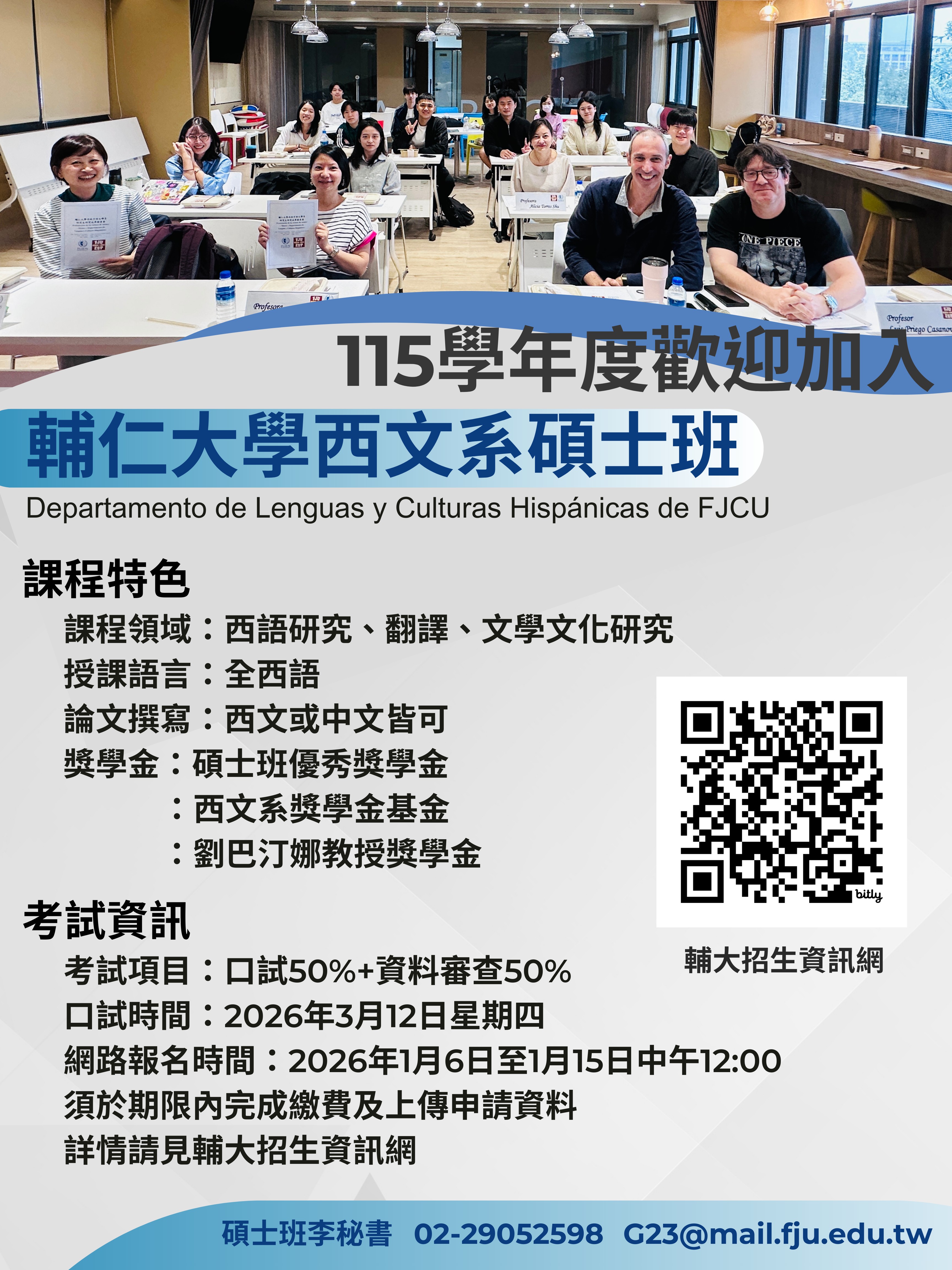 2026/01/06 09:36 [碩班招生公告]115西文系碩士班招生考試報名中!